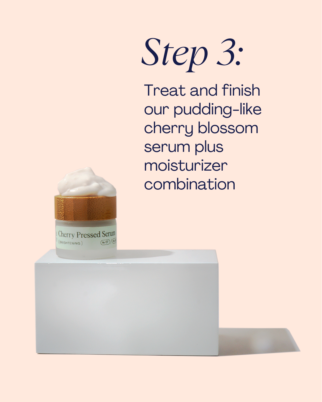• Cherry Pressed Serum restores hydration with a lightweight serum-moisturizer hybrid that hydrates deeply without overwhelming skin as temperatures rise.