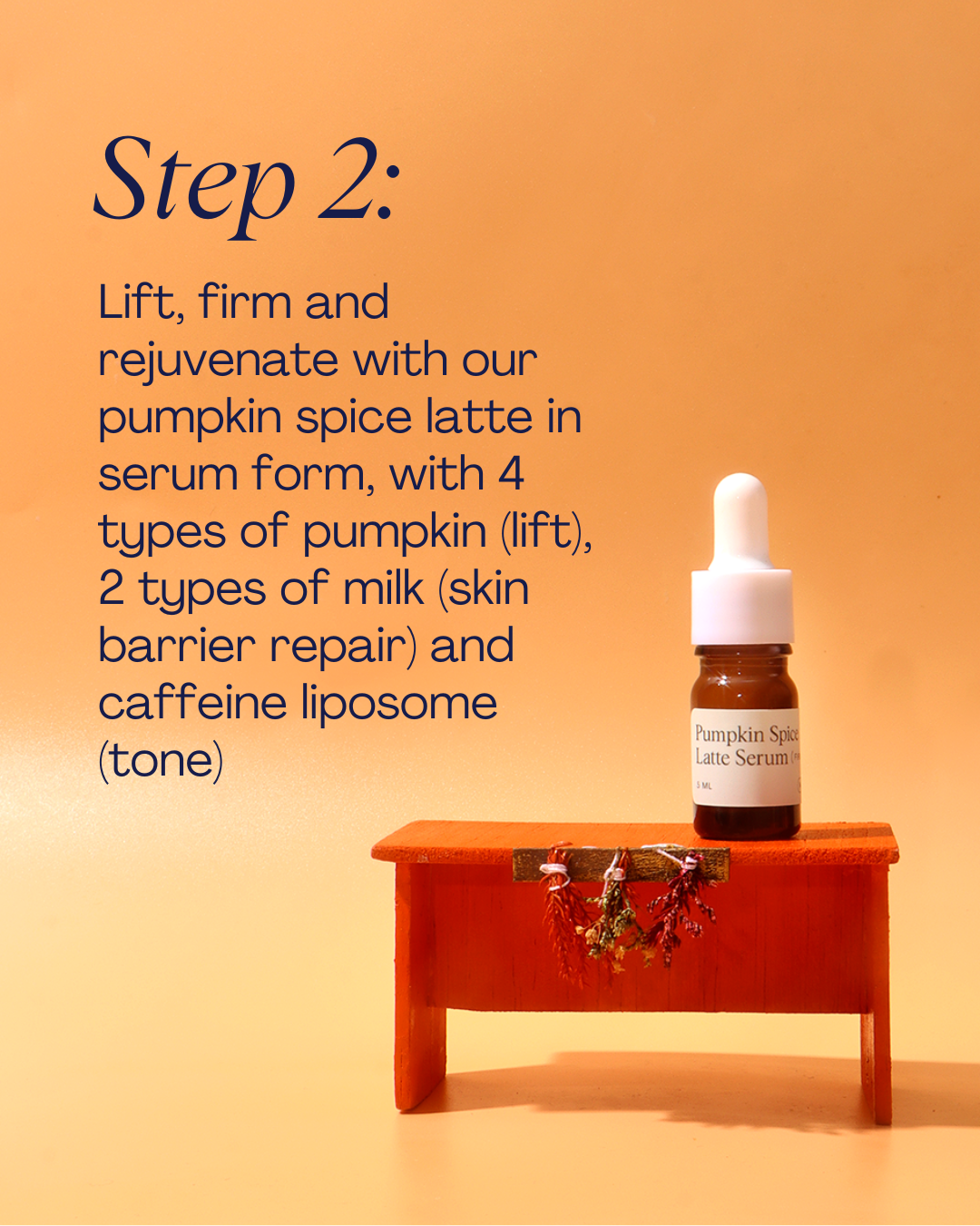 🍂 Pumpkin Spice Latte Serum (5ml, $35): This lifting, firming and toning skin treasure works its magic with 4 types of pumpkin (firms and lifts), 2 types of milk (restores skin barrier) and caffeine liposome (tones skin). Its a literal pumpkin spice latte in a serum bottle. Pumpkin Spice Latte Serum drops October 2025.