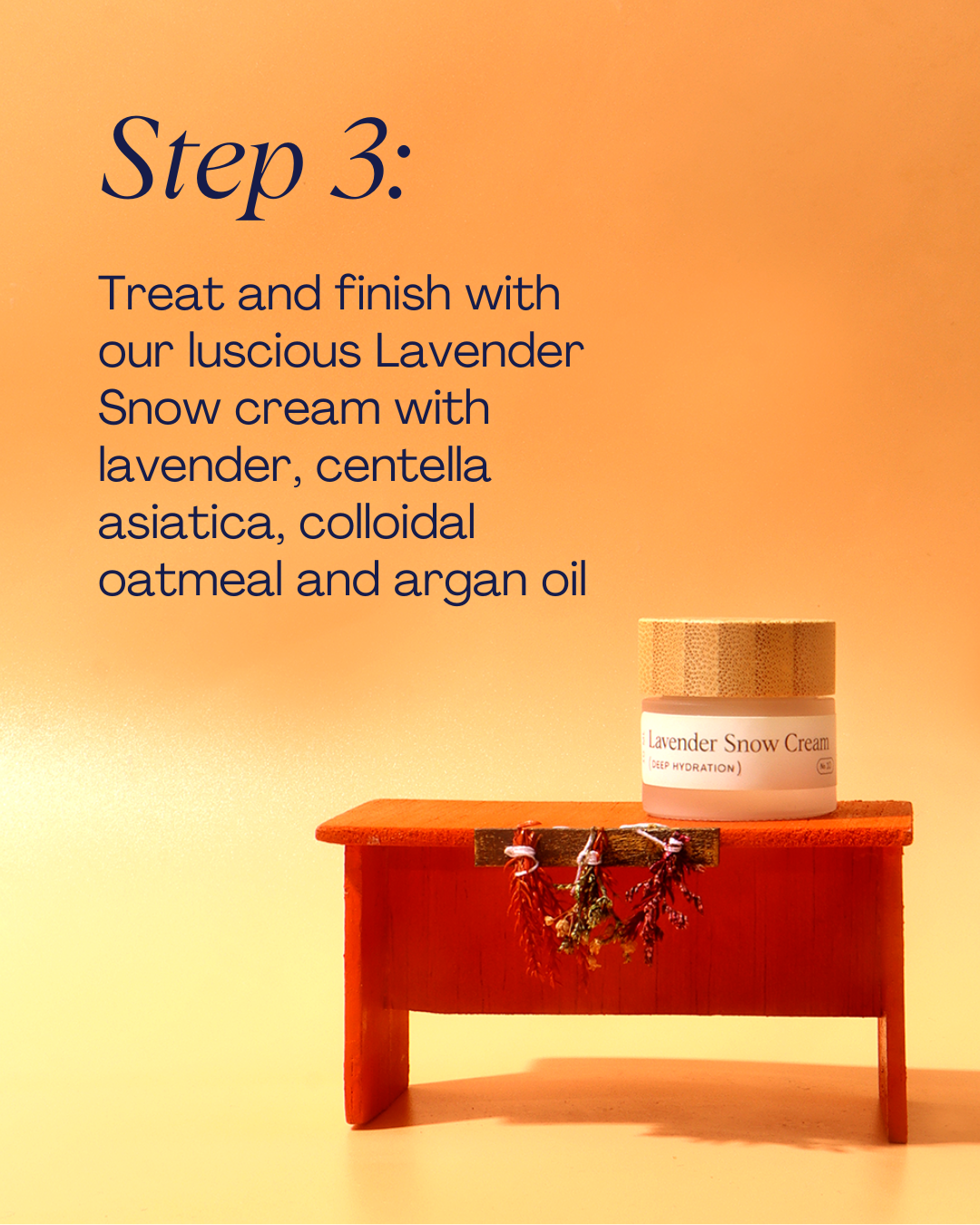 🍂 Lavender Snow Cream (10ml, $35): This luxuriously hydrating cream is many a winter skin savior. Laced with powerful antioxidant rich ingredients like lavender hydrosol, centella asiatica, colloidal oatmeal and argan oil, this cream restores a damaged skin barrier while the gentle scent will help put you to sleep.